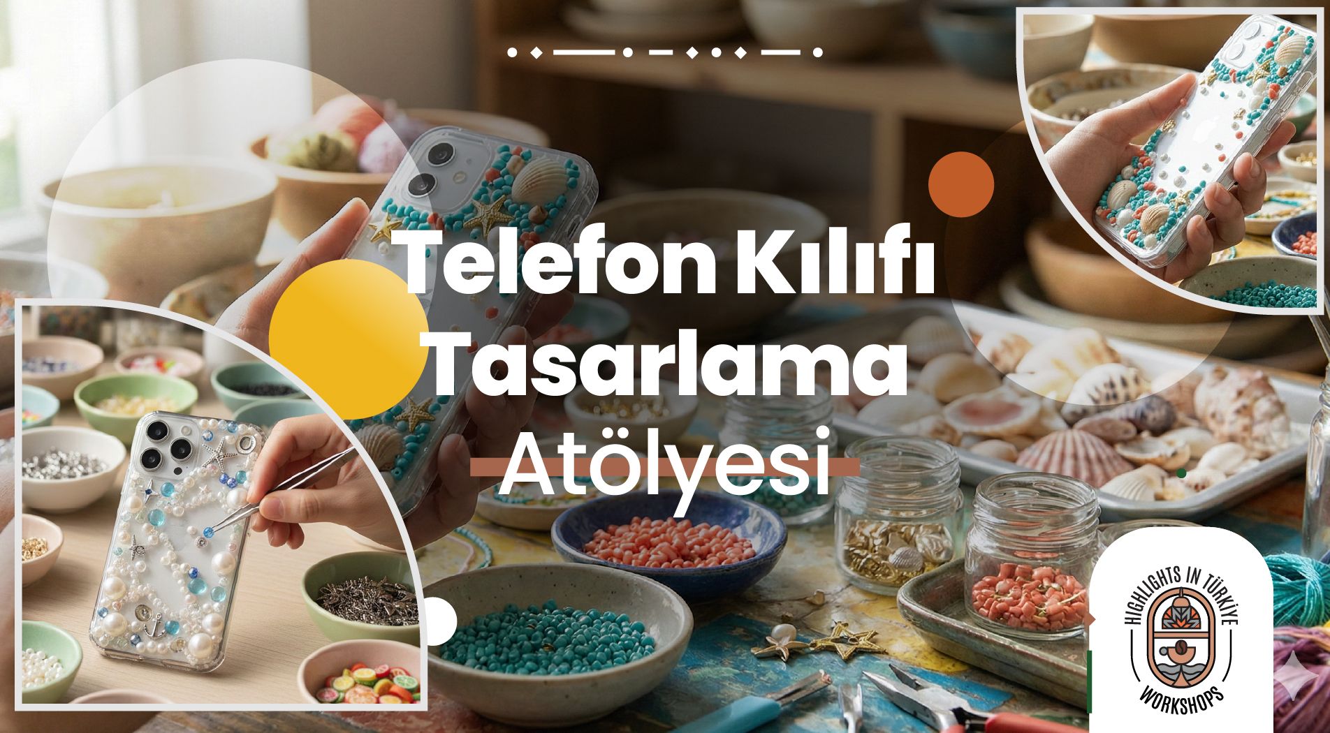Günlük hayatta kullandığınız telefonunuzu tamamen size özel bir tasarımla kişiselleştirin. Bu atölyede farklı renk, desen ve dekoratif materyallerle kendi telefon kılıfınızı tasarlayarak yaratıcılığınızı yansıtan özgün bir ürün ortaya çıkarırsınız. Atölye sonunda tasarladığınız telefon kılıfını yanınızda götürürsünüz.